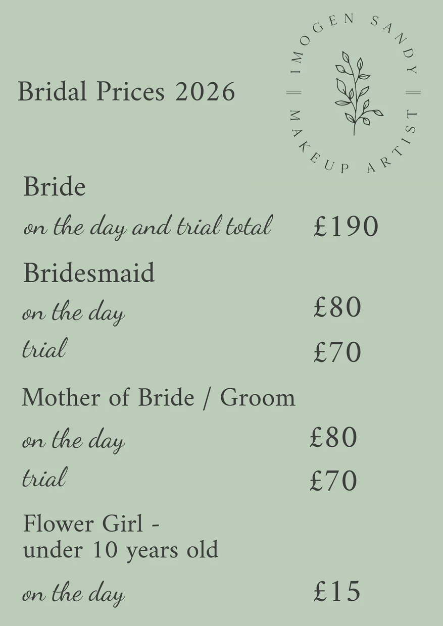 Imogen did my wedding makeup (mum & bridesmaid too) we looked & felt fabulous better still it lasted all day without melting in the heat! Total pleasure to have Imogen getting us ready and being part of our day. We all recommend her services 💕